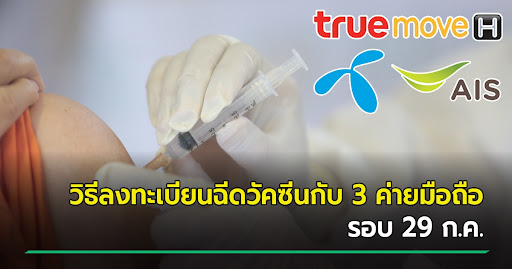 Source: www.rainmaker.in.th ลงทะเบียนฉีดวัคซีนโควิด 19 จาก 3 ค่ายมือถือ เอไอเอส ดีแทค ทรู จองวัคซีน ผ่าน 3 ค่ายมือถือ ลงทะเบียนฉีดวัคซีนโควิด ทำอย่างไรบ้าง เริ่ม 27 พ.ค.